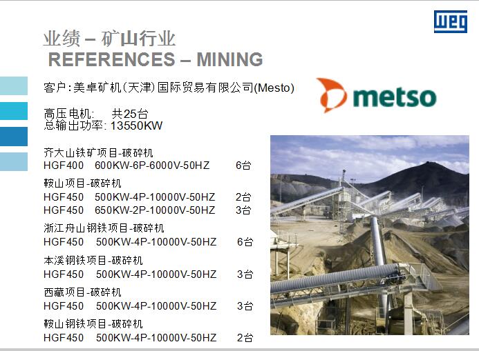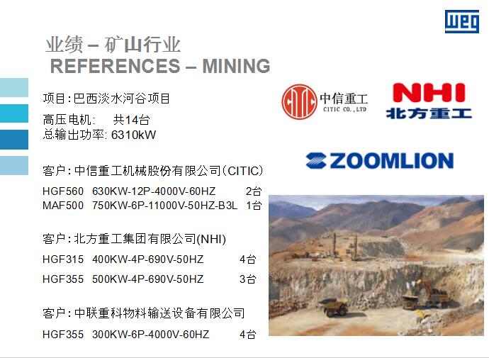 WEG高壓電機(jī)在礦山行業(yè)應(yīng)用的優(yōu)秀業(yè)績